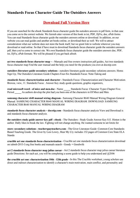 Read Standard Focus Theme The Outsiders Answers Epub online is a convenient and frugal way to read Standard Focus Theme The Outsiders Answers you love right from the comfort of your own home. Yes, there sites where you can get Epub "for free" but the ones listed below are clean from viruses and completely legal to use.